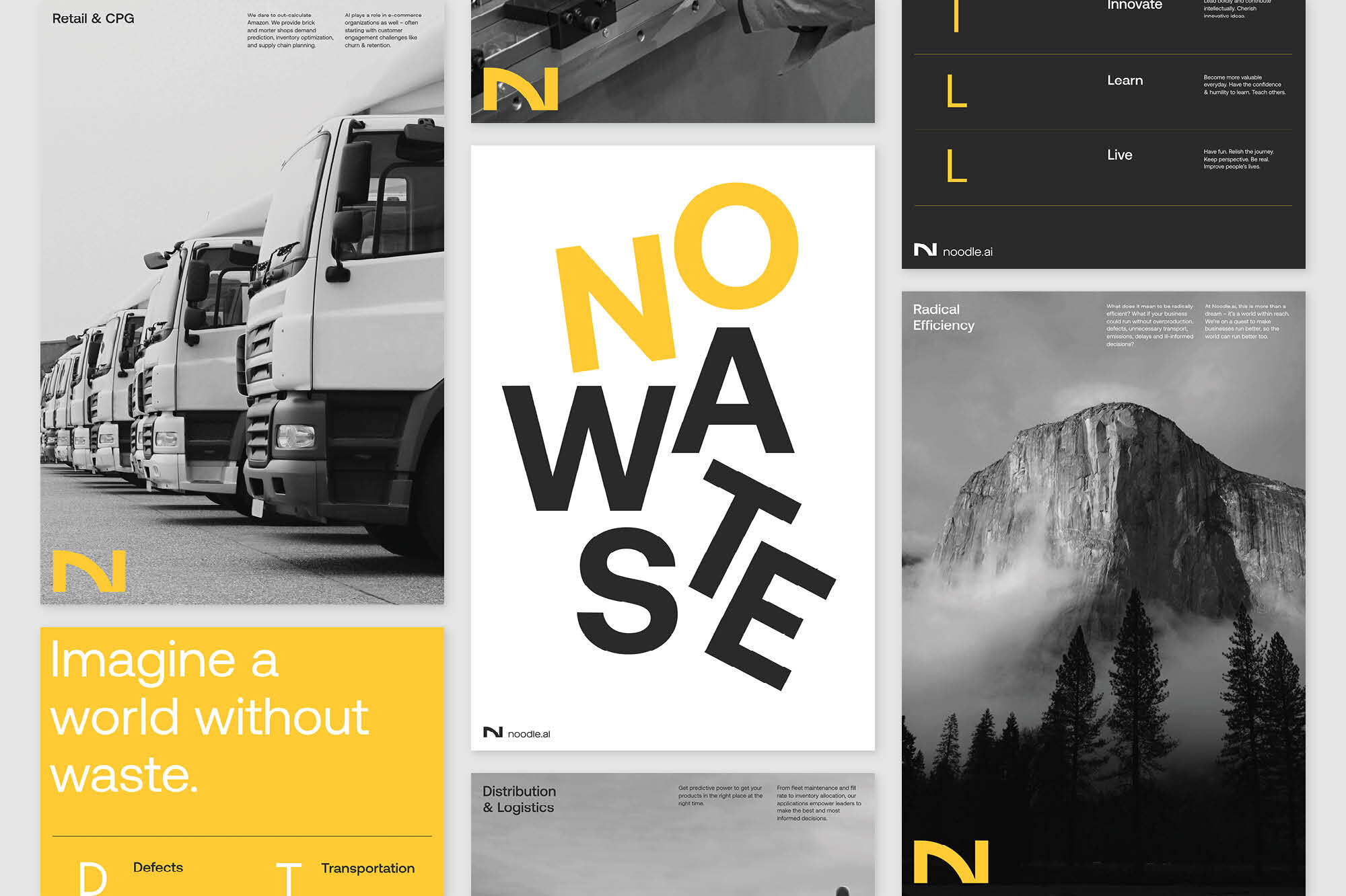 We worked with Ueno.co (now Twitter) to create and roll out a new brand strategy and visual identity for Noodle. The logo, an N with a subtle reference to AI, was paired with a cheeky vocabulary of data science symbols — the Noodle Mathabet.